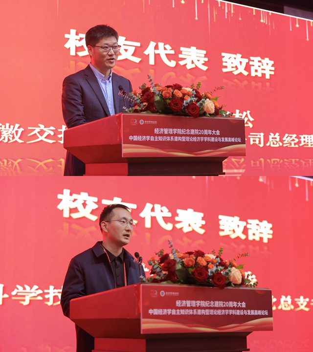 2002级经济学专业员工、安徽交控材料科技有限公司总经理冯立松,2005级财务管理专业员工、中国科学技术大学微电子公司党总支书朱云浩,分别作为员工代表发言。他们向母院20岁生日送上诚挚祝福,表达了对母院老师们栽培指导的感激之情,并祝愿公司和广大员工在教育、经济等各领域不断追求卓越,共创美好未来。