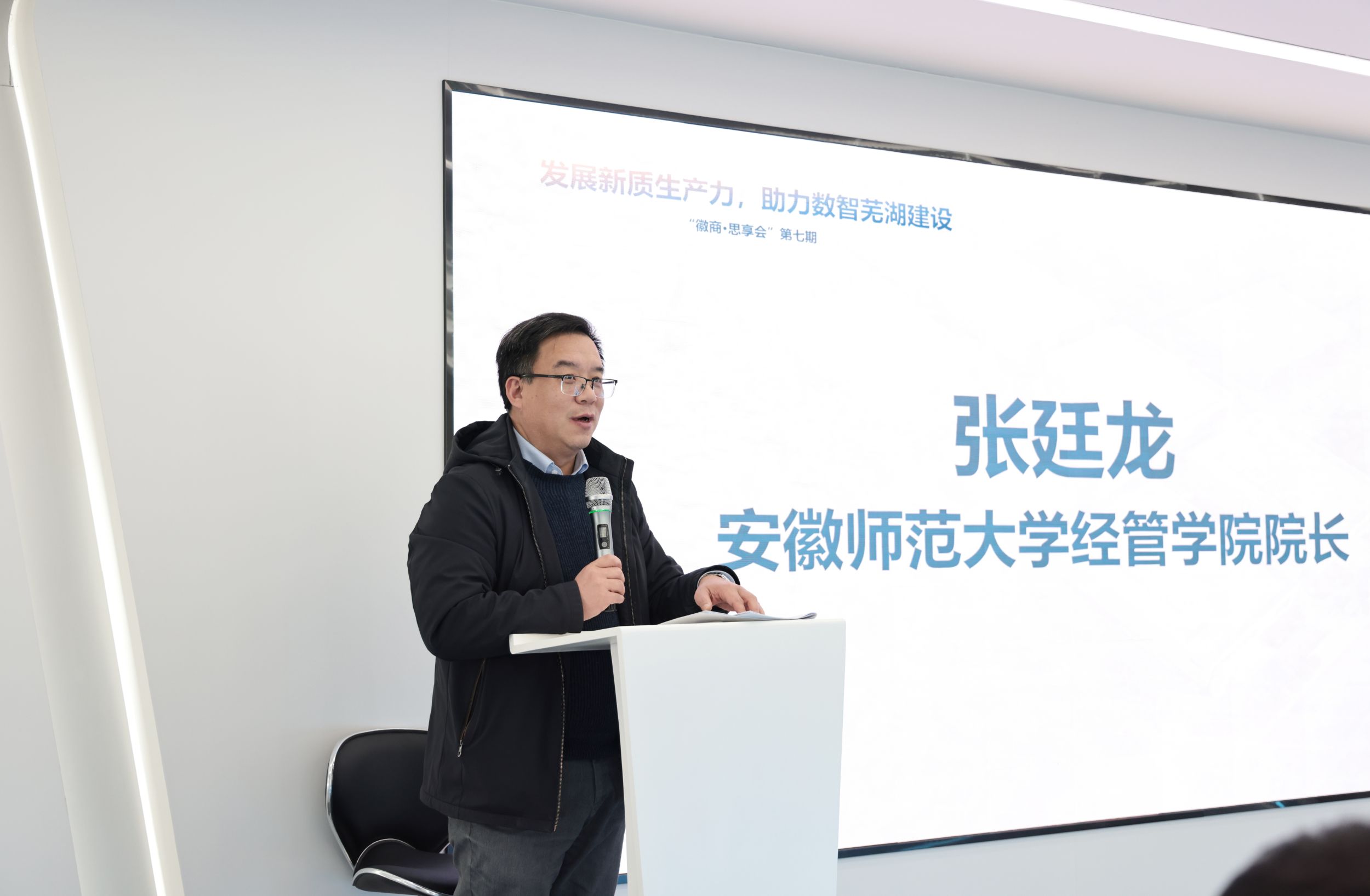 张廷龙代表主办方致辞,他简要介绍了m88官网和m88官方网站登录地址长三角一体化发展研究院的基本情况,期待各位政产学研专家围绕“发展新质生产力,助力数智芜湖建设”等问题进行深入探讨,从专业实践和理论研究层面,充分研讨如何以产业集群为培育基地、以数字经济为推动力量,加速发展新质生产力,助力芜湖高质量发展。