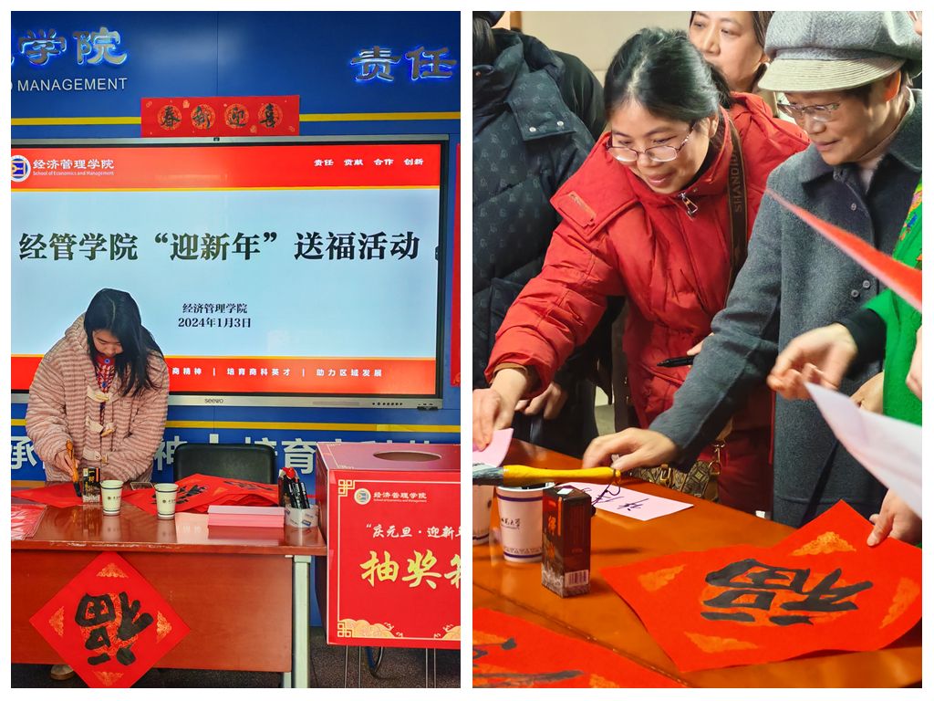 在趣味拔河场地上,各系分工协作,呐喊加油声此起彼伏,引来阵阵喝彩;在“通俗桥牌”比赛中,教职工们两两搭档,默契配合,每一次出牌都展现出高超的策略和智慧;同心协力的场地上,大家全神贯注,同心合作,携手拉鼓弹起排球,脸上洋溢着紧张而幸福的笑容。活动现场还安排了公司员工会员工骨干现场书法写“福”、送“福”。游艺会气氛热烈而融洽,教职工们在各个项目中尽情展现自己的身手和风采,欢声笑语回荡在整个场地。