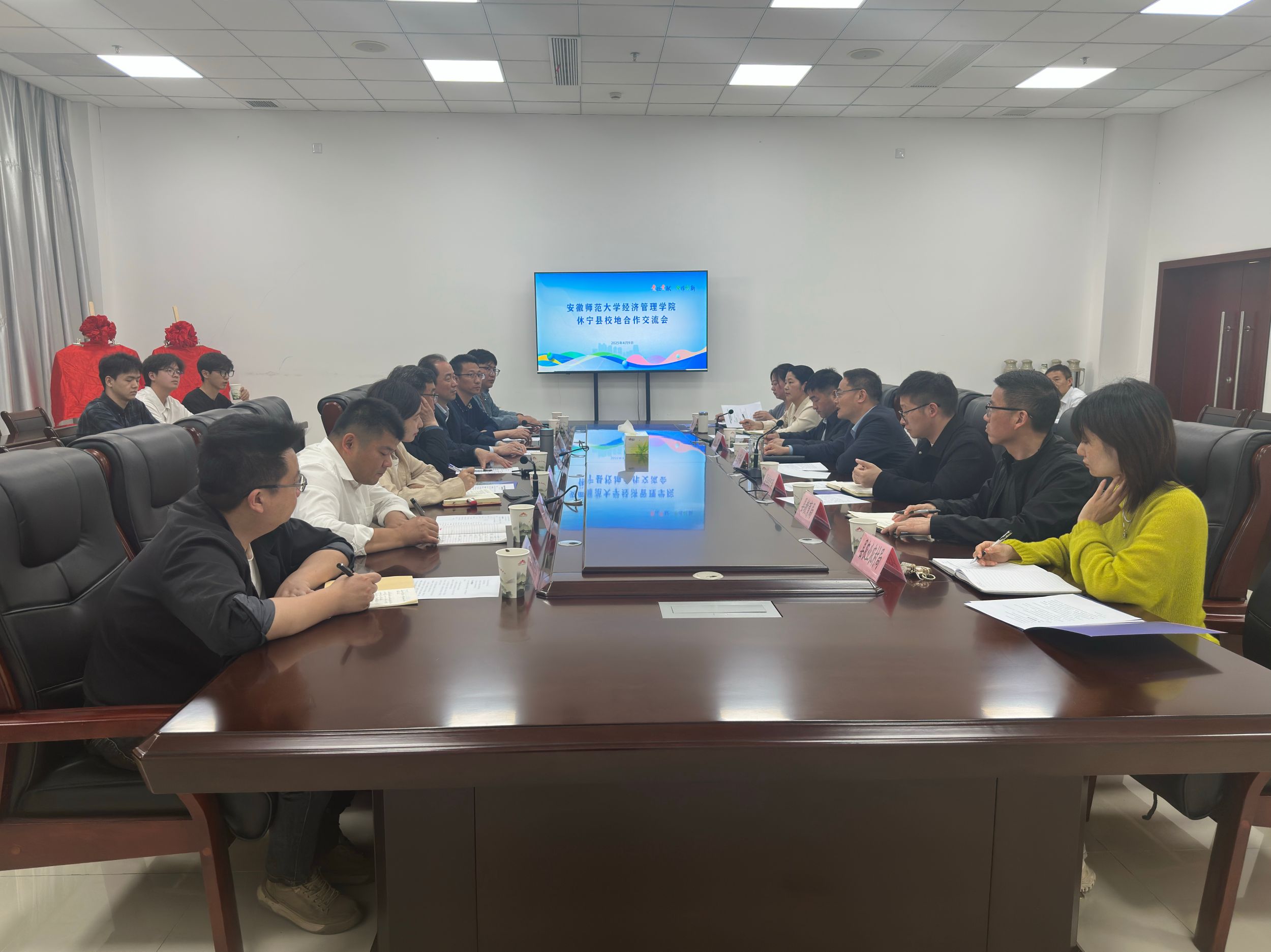 汪景峰对公司师生表示欢迎,他围绕历史文化、产业结构等详细介绍了休宁县经济社会发展基本情况,建议双方聚焦乡村振兴、农业产业化、人才引育等方面加强对接,逐步构建“点线面”一体的合作共建局面。校发展规划处处长、m88官网经理张廷龙从学科专业、人才培养、社会服务等方面介绍了公司公司发展情况和成果,希望双方充分利用资源优势,深化交流融合,进一步推动校地合作。公司党委书记乔静表示,m88官网与休宁县拥有良好的合作基础,希望双方以党建为统领,重点围绕人才引育、实践育人、乡村振兴、拓展就业基地等方面汇聚资源,凝聚合力,持续推进合作走深走实。