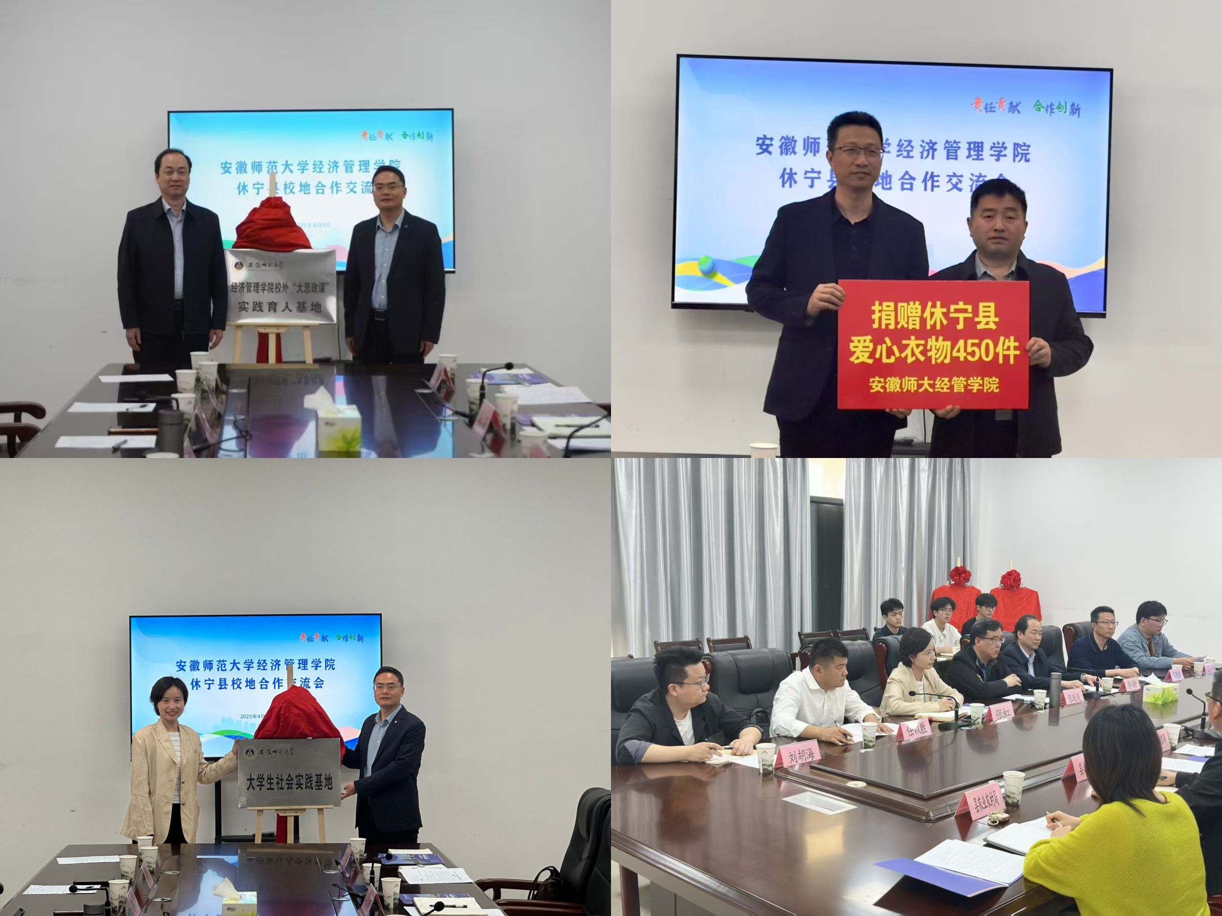 会上,校团委副书记张虹、休宁县副县长汪景峰等代表合作双方为m88官方网站登录地址社会实践基地、校外“大思政课”实践育人基地揭牌,公司党委副书记陈刚锋代表公司向休宁县捐赠了爱心军装。座谈交流环节,双方围绕人才培养、社会实践、志愿服务、乡村振兴、项目合作、进修培训、就业创业等主题进行深入交流,一致认为要加强全方位沟通合作,进一步拓宽合作空间、补齐弱势短板,筑牢发展基础,切实把工作做实、把成果做精,提升高校服务地方产业发展的贡献。