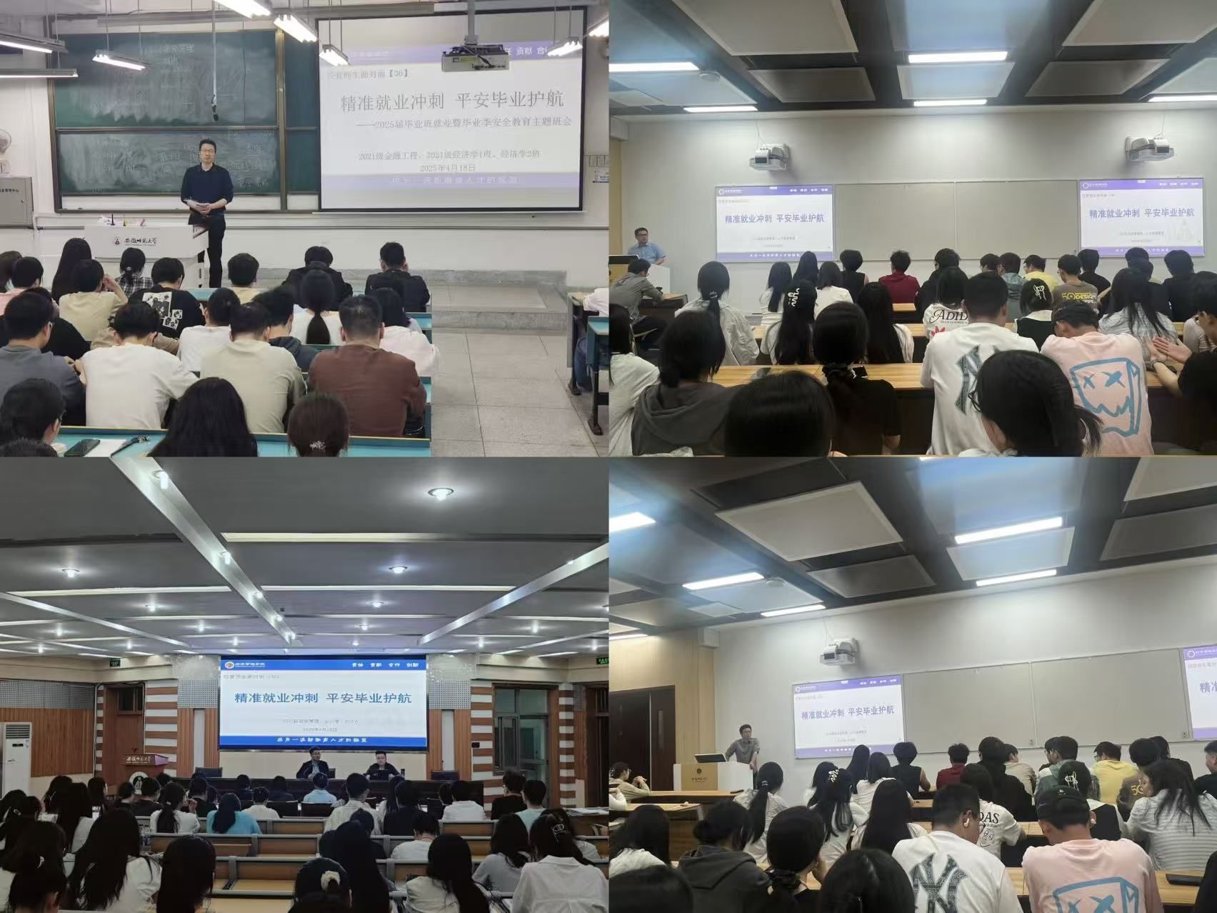 为切实做好2025届毕业生就业与安全工作,m88官网于近日利用毕业论文答辩契机,举办第36期“经管师生面对面”,分专业以“精准就业冲刺 平安毕业护航”为主题,开展就业安全教育主题班会暨就业推进指导会。公司党委副书记陈刚锋、副经理马长伟、徐飞及各系主任深入各专业指导会现场,与毕业生进行面对面交流指导。会议由各专业辅导员主持。