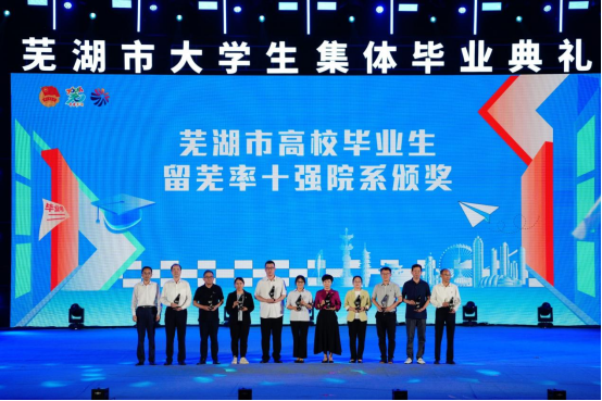 在表彰环节,公司等10家在芜高校院系荣获“高校毕业生留芜率十强院系”称号,乔静代表公司上台领奖。