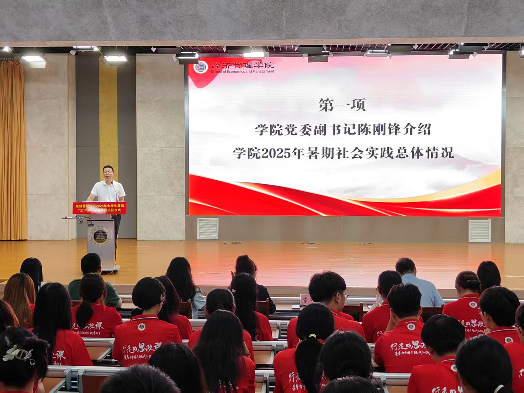 辅导员付擎宣读了公司2025年暑期社会实践团中央专项、校级、院级重点团队名单。