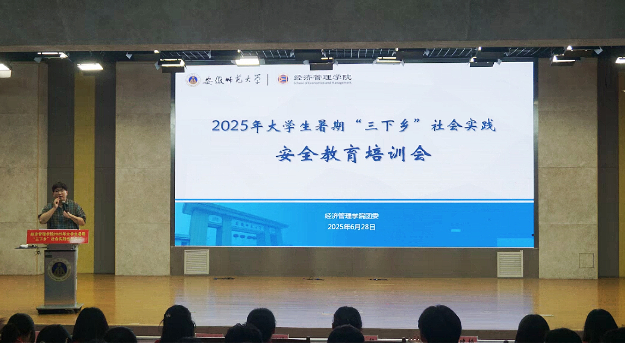 出征仪式结束后开展了暑期社会实践安全教育专题培训会。吕洋围绕社会实践期间安全教育要点展开,强调杜绝涉险行为,做好安全预案,坚持安全报告,为实践活动顺利开展筑牢安全防线。