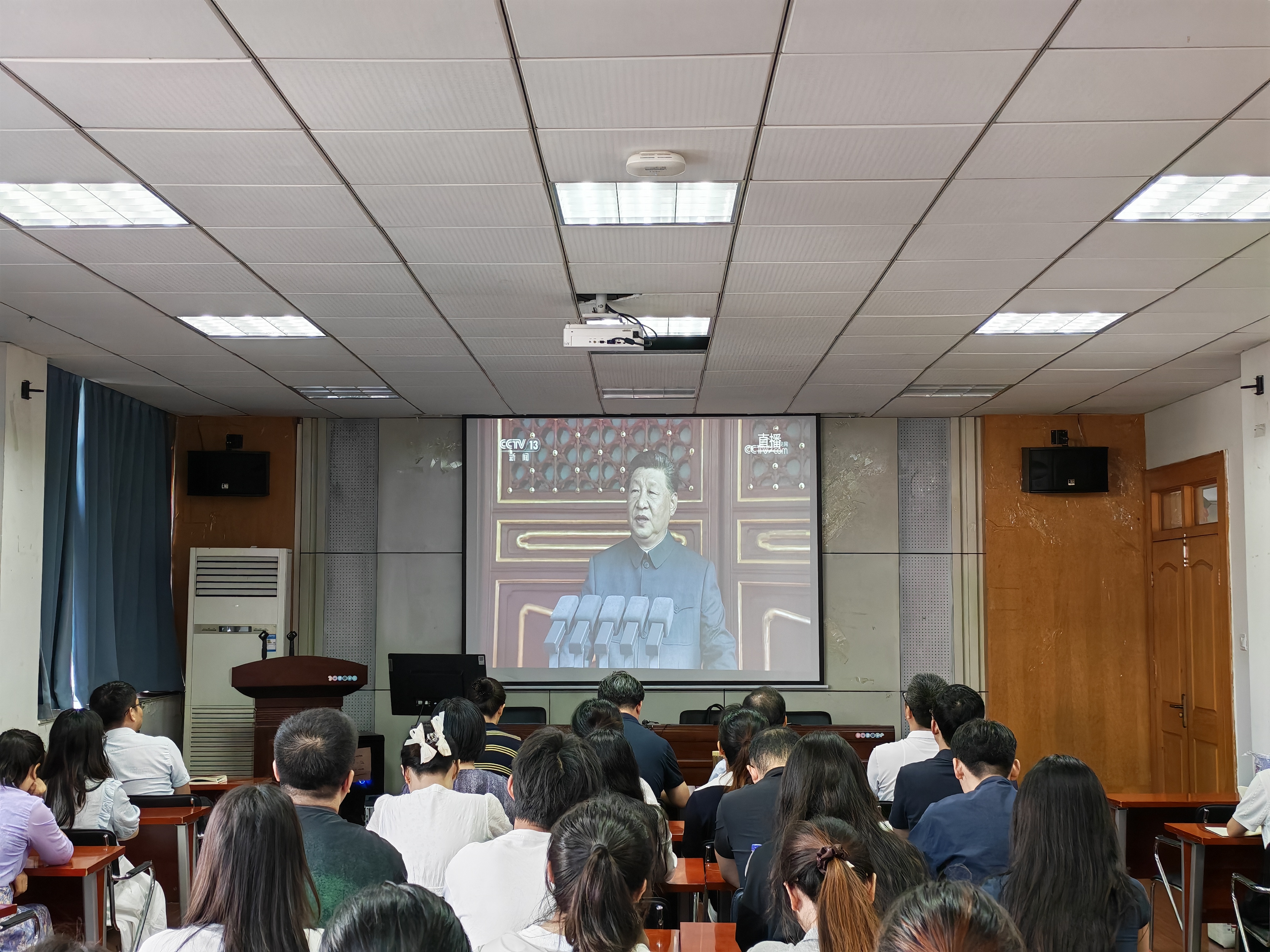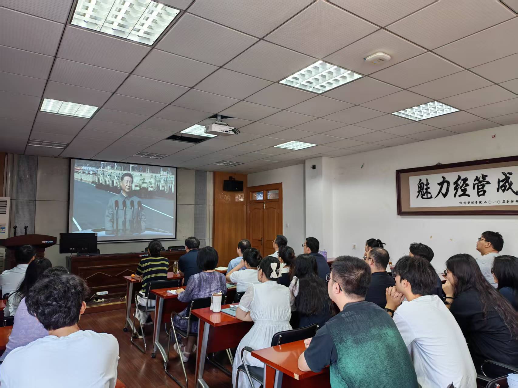 9月3日上午,纪念中国人民抗日战争暨世界反法西斯战争胜利80周年大会在北京隆重举行。m88官网师生在公司二楼报告厅集中收听收看纪念中国人民抗日战争暨世界反法西斯战争胜利80周年大会,公司领导班子成员、行政教辅和师生代表参加。