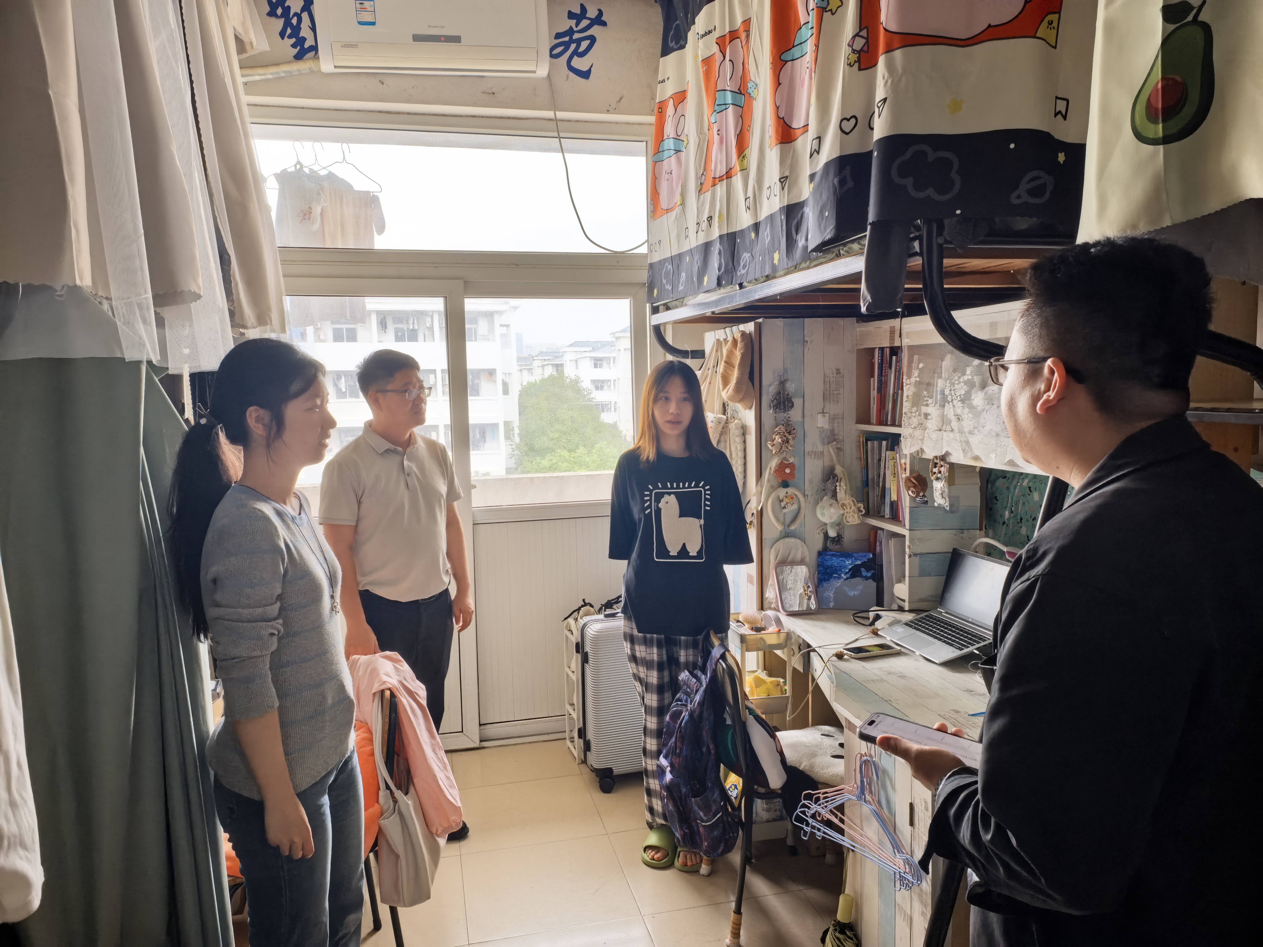 为全面了解员工思想动态和学习、生活、成长等情况,正值中秋、国庆双节来临之际,公司领导班子、教师和学工团队通过走访员工宿舍、慰问留校员工等方式,与员工“面对面”交流,共话成长。