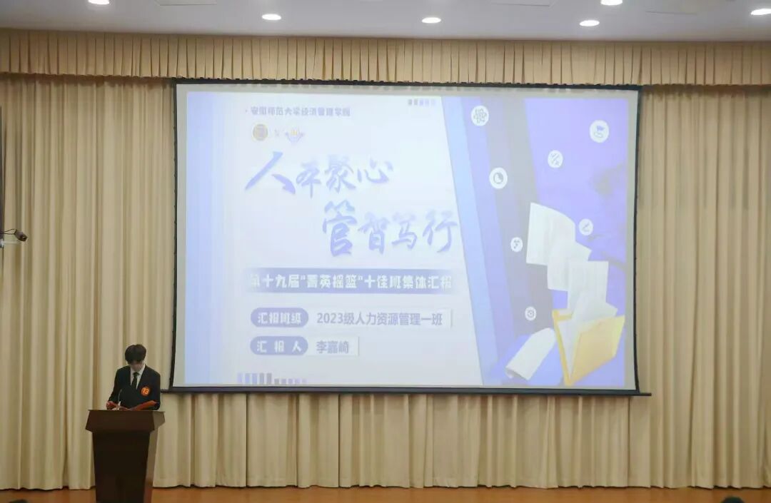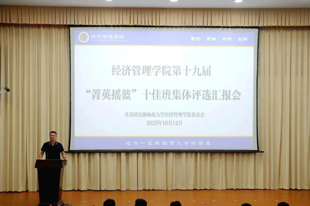 为进一步发挥班集体在“立德树人”中的重要作用,推动优良院风、班风、学风建设,10月12日晚19:30,m88官网在赭山校区科技南楼报告厅举行第十九届“菁英摇篮”十佳班集体评选活动。公司党委副书记陈刚锋、财会系主任孙丽、经济系主任陈龙、数字经济系主任孔敏、金融工程系主任陈超、人力资源管理系主任鲍子如、院团委书记吕洋、全体专兼职辅导员和全体2025级本科新生参加。评选汇报会由第22届团委、员工会部长韦凯翔主持。