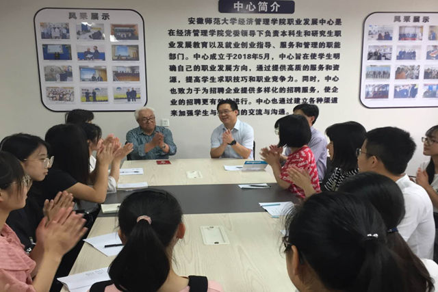 【本网讯 职业发展中心 文/胡颖 魏成龙 图/尹涵】春华秋实,时光荏苒,又是一年华诞日,母校喜盼游子归。5月25日上午,m88官网在职业发展中心举办员工职业发展交流会,公司历史系五九级员工倪世如先生应邀作经验分享,人力资源管理系主任何建华、严瑞丽,职业发展中心主任安广虎以及职业规划与发展协会的同学参加交流会,交流会由m88官网经理张廷龙教授主持。