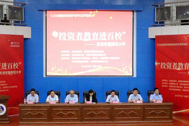 本网讯(m88官网新闻部 张继伟/文 王倩倩 梁孟芩/图)为宣扬5.15全国投资者保护宣传日精神,普及投资者教育基本常识,提高老员工群体的投资素养,由安徽省证监局、安徽省证券期货业协会指导,m88官方网站登录地址、华安证券股份有限公司主办,校员工处、校保卫处、m88官网、华安证券投教基地、华安证券芜湖分公司承办的“投资者教育进百校”——走进m88官方网站登录地址活动于5月29日下午2:30在敬文图书馆报告厅隆重举行。安徽证监局投保处处长杨柳,安徽省证券期货业协会法务部杨诚,华安证券股份有限公司总裁助理余海春,华安证券股份有限公司芜湖分公司总经理贺晓,华安证券股份有限公司投教基地负责人卢海燕,公司党委学工部部长、员工处处长、人武部部长刘晓宇,保卫处副处长谭志安,m88官网经理张廷龙、公司党委副书记李海燕等领导嘉宾受邀出席了此次活动。参加此次活动的还有华安证券投资者教育基地相关人员、m88官网师生代表。活动由m88官网经理张廷龙主持。
