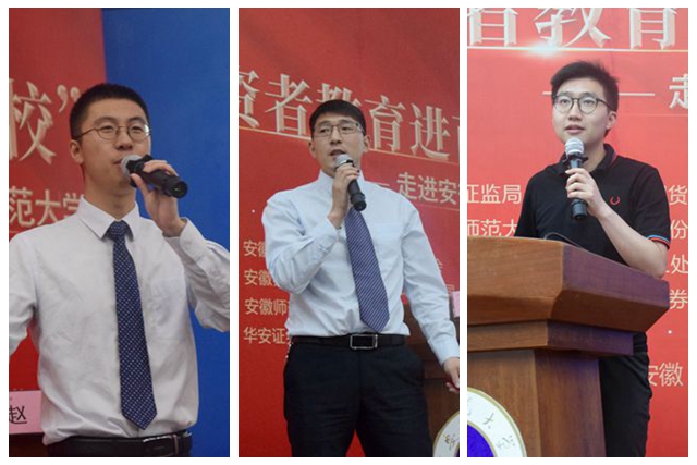 开幕仪式结束后,安徽证监局和华安证券投教基地的讲师进行了防范校园贷、投资知识教育宣讲活动。华安证券合规管理部赵蔷讲师为与会代表讲解了非法“校园贷”风险解析与防范,通过大量案例和理论分析让员工透析了校园贷的本质。华安证券股份有限公司李杰讲师分享了“证券职业生涯规划”,结合自身工作经历为员工分享求职和工作经验。安徽证监局马鸣讲师讲解了“投资者基本权利与维权”,向与会代表介绍了基本的投资者知识和维权方式。