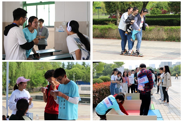 “青春五四·谜游花津”大型户外活动共设置学习青年、文艺青年、运动青年、历史青年等8个游戏关卡,并额外设立复活关卡,以三人团队形式参赛闯关,实行“开放式自由闯关”的闯关形式,主要包括:猜答谜题、高能舞蹈、智慧乒乓、默契接球、你划我猜、解答诗词、接力闯关、踏板解题等各种考验体力智力的游戏,趣味性十足,竞技性强。