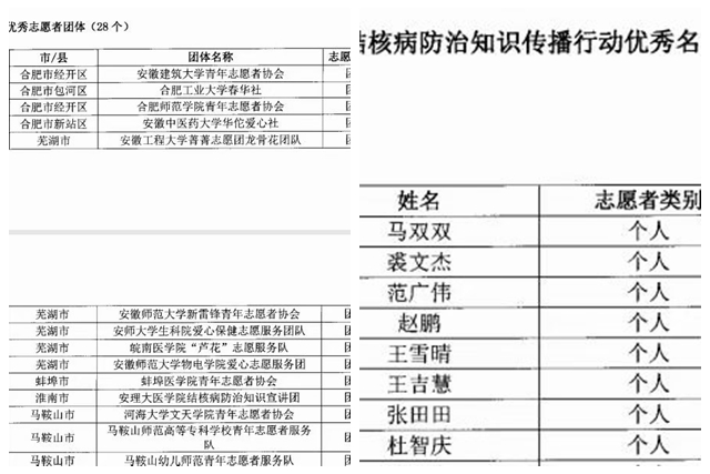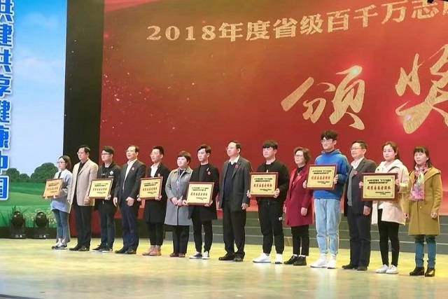 主题宣传活动现场,安徽省百千万志愿者授旗仪式、2018年度国家级“最美防痨人”、安徽省优秀百千万志愿者颁奖仪式相继举行。m88官网新雷锋青年志愿者协会荣获2018年度安徽省“百千万志愿者结核病防治知识传播行动”优秀志愿者团体称号,协会会长王吉慧荣获“安徽省结核病防治优秀志愿者”称号。新雷锋青年志愿者协会一直秉承“奉献社会,收获自我”的理念,“肺结核知识进班级”、“肺结核知识宣传进校园”、“结核病防治的知识讲座”等活动的开展,帮助同学们更好地了解结核病,维护在校老员工的健康。得益于新雷锋青年志愿者协会的长期坚持,校园中越来越多的青年老员工参与到结核病防治的志愿活动中;越来越多的青年志愿者齐心协力,集个人为团体,共建共享健康校园。