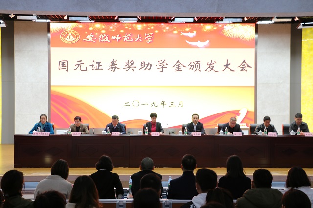 刘晓宇宣读了《2018年国元证券奖助学金颁布决定》文件。国元证券股份有限公司党委副书记、监事会主席蒋希敏,公司党群办主任李克木,芜湖分公司总经理汪洋为获奖员工颁发证书。
