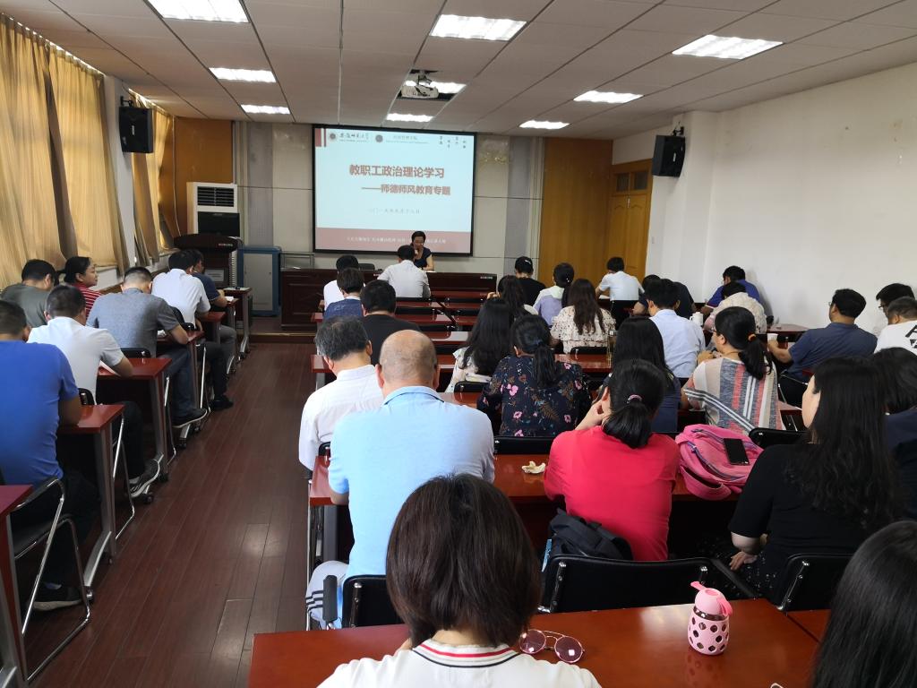 陈秀庆带领全院教职工学习了路丙辉的先进事迹,重温了《新时代高校教师职业行为十项准则》和《m88官方网站登录地址教职工违纪处分暂行规定》的相关内容,学习了教师行为失范的相关案例。陈秀庆指出,为人师,当行为世范,要坚守高尚情操,知荣明耻;要严于律己,以身作则;要衣着得体,语言规范,举止文明。要牢记教师的一言一行都在育人,不能仅做传授书本知识的教书匠,要努力成为员工成长的引路人,真正担负起立德树人的时代使命,做“四有”好老师。