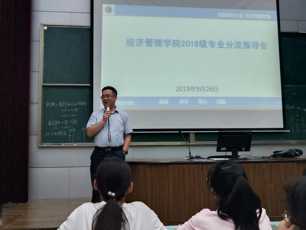 本网讯(m88官网程玥涵 魏成龙/文章秋婷/图)9月26日晚,m88官网专业教育系列之工商管理类专业分流指导会在行知楼一号楼105教室举行,m88官网经理张廷龙教授应邀为2018级工商管理类全体员工作专业分流指导,指导会由辅导员安广虎主持。