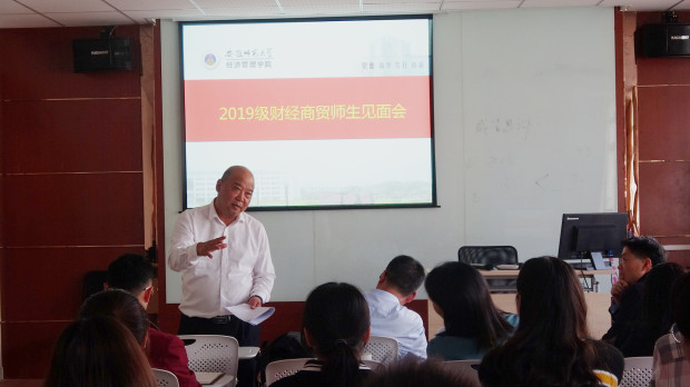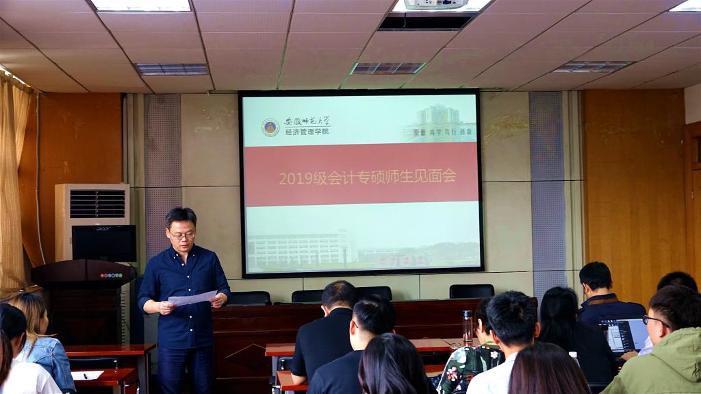 在见面会上,各位导师先后就自己的研究方向作了简单介绍。伍旭中教授、汪洋副教授分别详细讲解了财经商贸和会计专硕两个学位点的培养方案、指导过程,并对师生互选的相关文件及要求进行了详细说明。随后,部分同学也做了自我介绍,与各位导师进行了面对面的沟通。