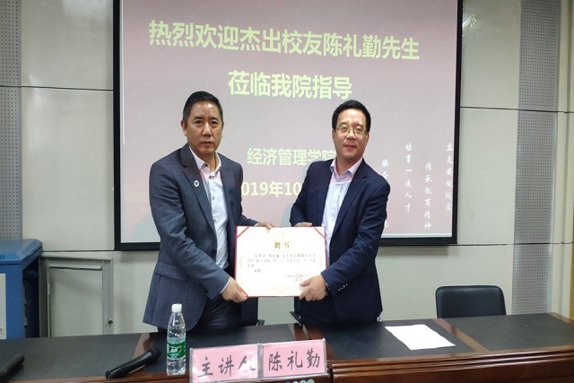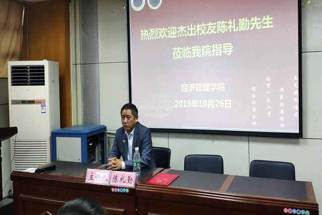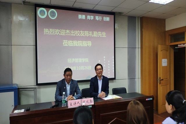 陈礼勤首先基于规模的变化和业务市场的开拓详细介绍了其公司的发展现状。其次,结合自己的创业经历与在场师生分享了创业原因。他表示创业是逆境中的选择,不安于现状,不甘于平庸是创业的初衷。最后,陈礼勤为老员工创业提出了三点建议:1、创业并非神秘,好的想法、吃苦耐劳的精神和核心竞争力尤为重要;2、管理并非复杂,常识是优秀管理者的必备品,高深的知识从常识中积累;3、坚持理论与实践相结合。
