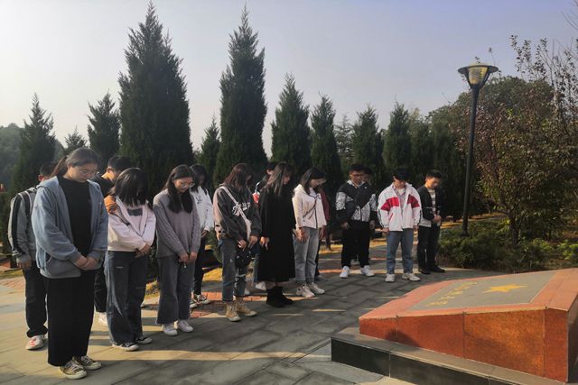 第一、二、三、八小组的调研地是芜湖烈士陵园,芜湖烈士陵园坐落在市区东麓,与风景秀丽的神山森林公园相毗邻,是人文历史与自然景观兼备的红色基地。小组成员登上纪念碑,在肃穆庄严的烈士纪念碑下宣读入党誓词,并集体为在革命战争年代浴血奋战而奉献出自己宝贵生命的革命烈士们默哀,以此抒发自己的敬意。