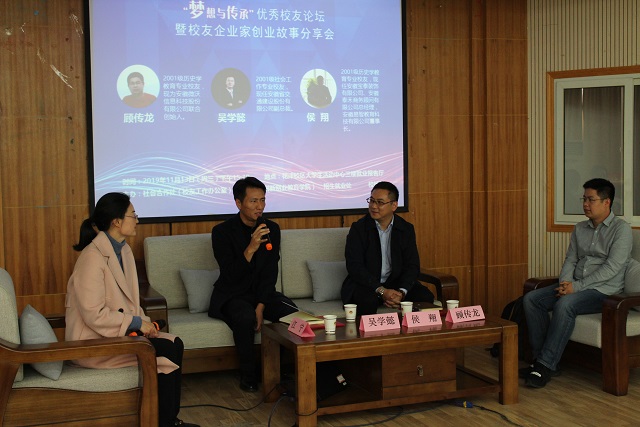 本网讯(老员工创业协会 陆玉凤)11月13日15:30,第十二期“梦想与传承”优秀员工论坛暨员工企业家创业故事分享会在版权所有 m88官网-登录入口老员工活动中心三楼就业报告厅举行,本次活动由社会合作处(员工工作办公室)、教务处(创新创业教育公司)、人才招聘处、校团委主办。员工企业家顾传龙、吴学懿、侯翔应邀出席,通过座谈会的形式为在场同学们带来创业知识盛宴。创业模拟培训班学员参加分享会,会议由校社会合作处副处长江宁主持。