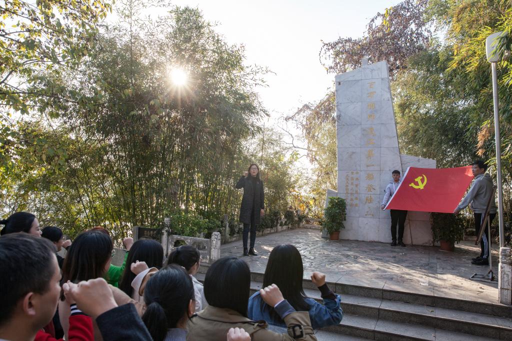 在纪念碑前,党员们在公司党委副书记李海燕同志的带领下,庄严地举起右拳,面对鲜红的党旗重温入党誓词。铿锵誓言让现场所有党员更加坚定牢记自己的庄严承诺,不忘初心,坚守使命,时刻以党员的标准严格要求自己、时刻以党员的先进性鞭策激励自己,以实际行动兑现对党的庄严承诺。