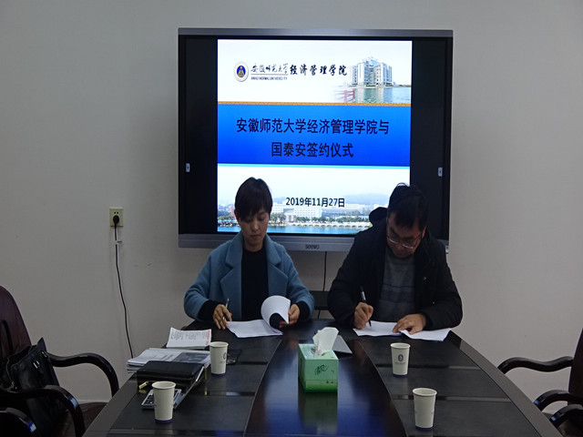 本网讯(m88官网 梁倩)11月27日下午,m88官网与国泰安的签约仪式在公司四楼会议室举行,国泰安华中区总经理刘兰、安徽区总经理张明、市场总监薛金松,m88官网副经理韩玉刚、投资系主任胡小文、财务管理系主任罗昆、部分专业课老师参加此次签约仪式。