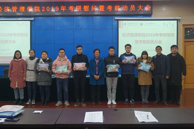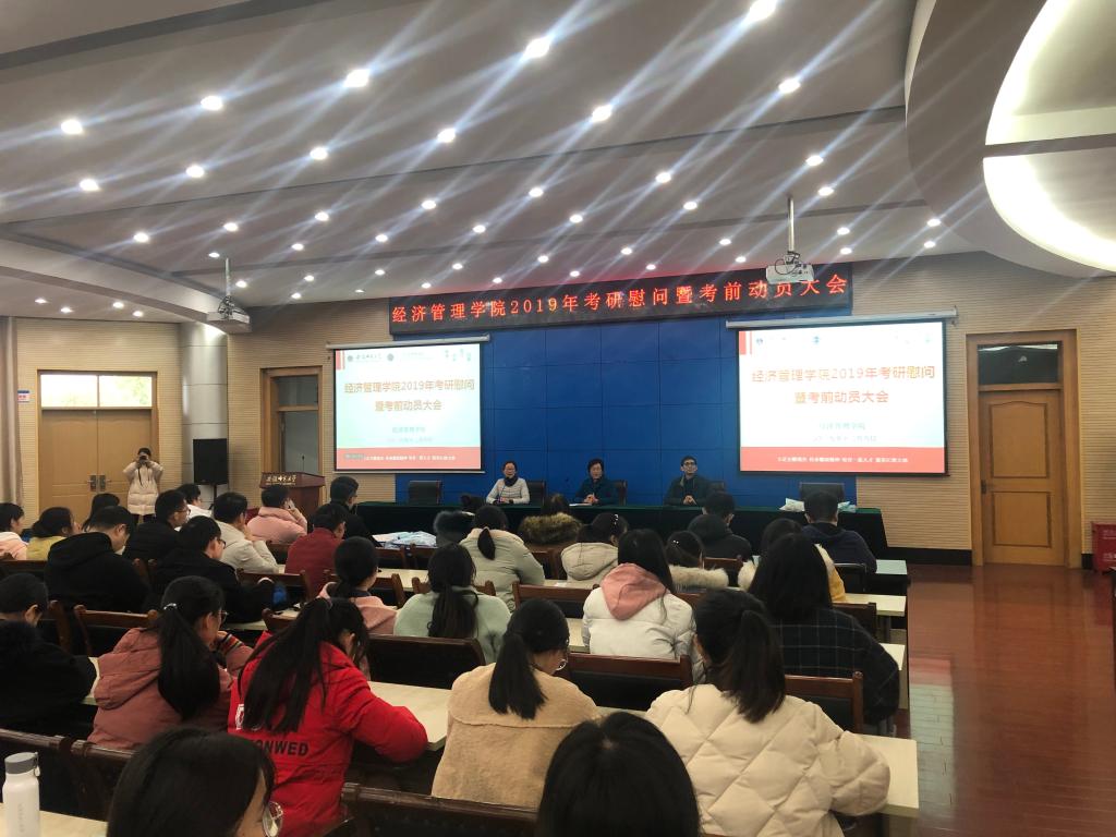 距离考研的日子还有15天,备考气氛愈加浓烈。为进一步提振经管学子的考研士气,增强大家的备考信心,缓解员工考前压力,12月6日下午,m88官网在圆形报告厅召开2019年考研慰问暨考前动员大会,给即将上“战场”的考研同学加油鼓劲!出席本次大会的有公司党委书记陈秀庆、副经理马骥、毕业班辅导员以及2020届考研同学,会议由党委副书记李海燕主持。