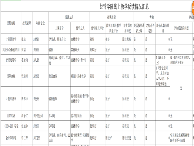 2月17日-3月1日期间,公司共有8门核心通识课程开展线上授课,公司以通识课程的线上教育为契机,积极探索课程教育过程中所存在的问题,主动改进,不断完善。此外,各系部更是通过开展线上教学模拟课程,集中学习线上课程开展要求、分享建课经验、讨论授课模式,确保课程建设有成效、授课形式有创新、课程内容易接受。各位系主任也主动做好系部网络教学的督促与指导工作,帮助年纪较大、网络使用不熟练的老师开展网课建设,保障所有课程均能顺利上线。线上教学对公司所有教师以及公司教学体系建设都是一项创新的挑战,m88官网以“崇德 尚学 笃行 创新”的态度,不断探索,不断完善,在完成本次线上教学目标的同时,不断拓展公司教学育人途径。