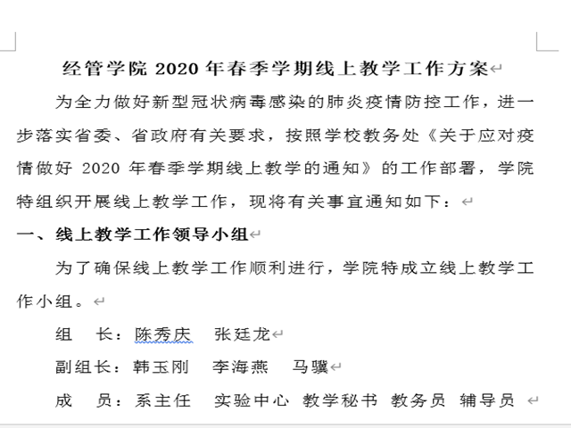 在接到公司开展“线上教学”工作文件以后,公司第一时间通过网络召开公司领导办公会、各系部中心主任工作会,传达上级文件精神,积极研讨公司研究生课程、本科生课程等各类课程线上教学方案。并召开公司教师论证会,针对线上教学可能出现的难题以及突发情况做好各类预案,做好线上教育各项准备工作。同时,公司教学秘书主动询问公司各年级员工,了解员工线上教学开展实施建议,真正做到公司线上教学“有举措、有体系、建框架、重细节”,从而扎实构建公司网络教学体系,确保网络教学实效。