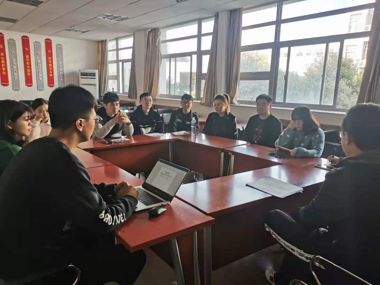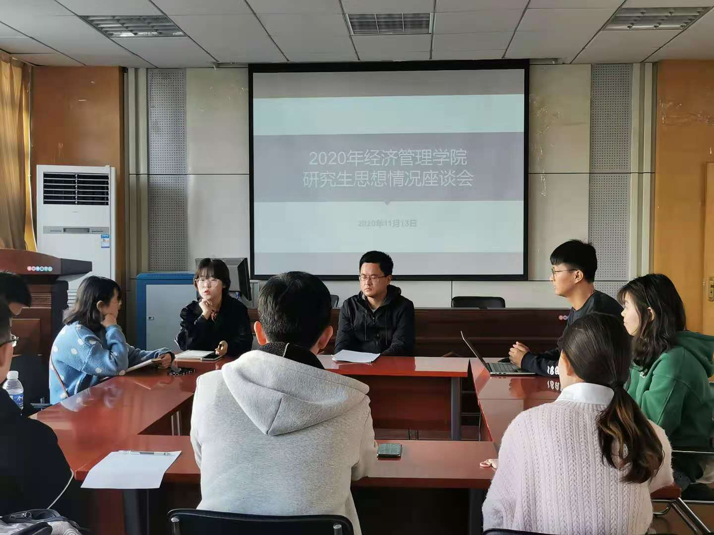各班级的班委和员工代表也相继发言,反馈近期具体工作,以及期间遇到的困难和问题。学习方面,研一新生对论文指导、数据软件运用等方面的课程十分关注;同时对上课过程中出现的硬件设施损坏问题,提出了改善建议。生活方面,伴随着入冬气温降低,寝室用水用电安全问题更为突出,需要引起同学们的重视。毕业班工作方面,伴随着秋招紧锣密鼓地进行,如何获取更多的招聘信息、把握机会,成为当前最紧迫的问题之一。