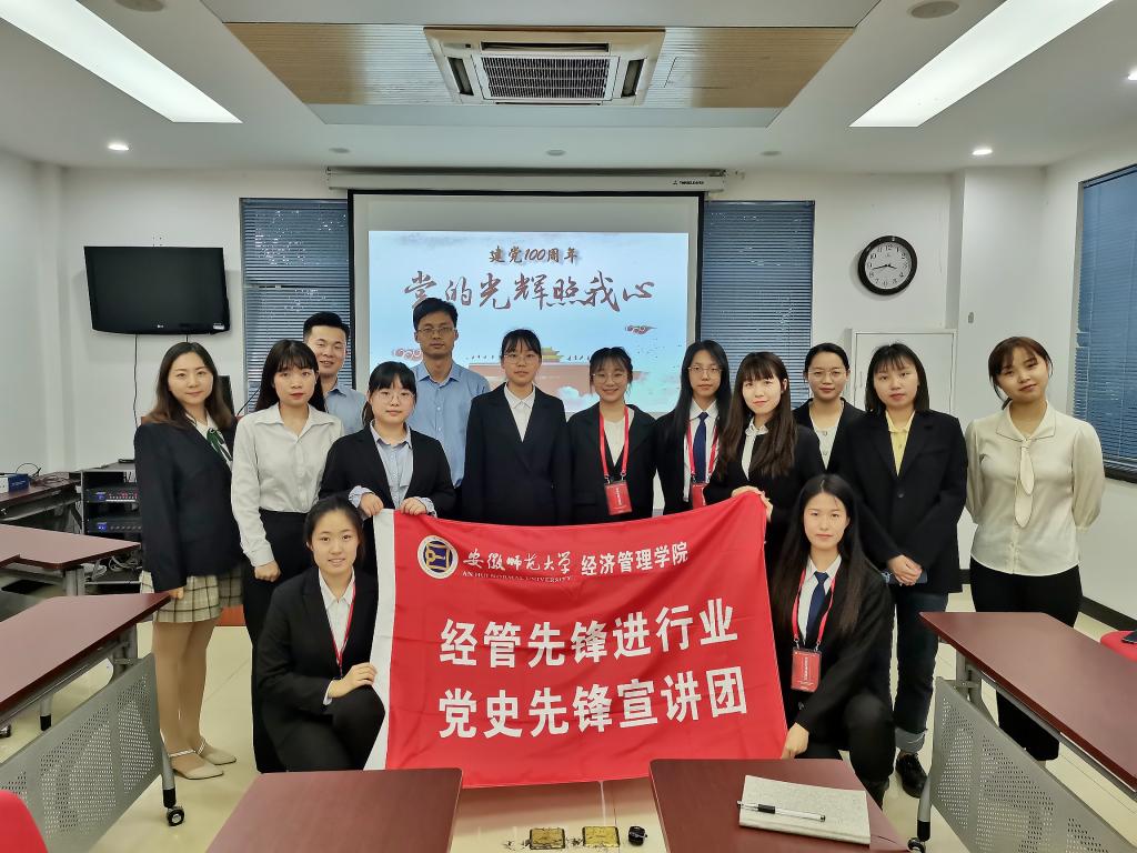 今年是中国共产党成立100周年,为做好党史学习教育,开展好党史学习教育、党史宣讲活动,公司党委联合芜湖市人力资源行业协会开展“经管先锋进行业”系列活动,立足地方,加强与地方政府、行业协同,通过组织m88官网“党史先锋宣讲团”成员发挥专业优势,将宣讲活动送到行业基层、企业生产车间一线,传播经管先锋党史宣讲声音。