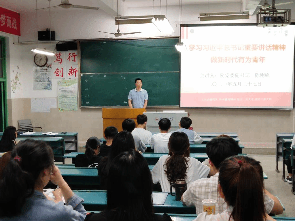 党课中,他指出,习近平总书记着眼党和国家事业薪火相传、永续发展,立足中华民族伟大复兴战略全局和世界百年未有之大变局。总书记指出“党和国家事业发展对高等教育的需要,对科学知识和优秀人才的需要,比以往任何时候都更为迫切”。总书记深情寄语“当代中国青年是与新时代同向同行、共同前进的一代,生逢盛世,肩负重任”,对广大青年提出爱国爱民、锤炼品德、勇于创新、实学实干的重要要求。作为高校中的员工党员,更应该将个人的成长成才置身于“两个大局”中,心怀“国之大者”,把握大势,敢于担当,善于作为。结合总书记的讲话,陈刚锋围绕公司员工工作理念,公司“五育并举”活动,体美劳实践活动月,党史先锋宣讲团,公司公司改革发展历程等方面内容,和同学们就总书记到清华大学考察时的重要讲话,分享了自己的解读和感悟。党课最后,陈刚锋对党支部同学提出勉励。他提醒大四毕业班的员工党员,马上就要面临毕业,要始终牢记自己员工党员的身份,在文明离校各项工作中,做好表率,站好最后一班岗。针对二三年级员工党员,他强调,作为一名商科员工,要强化自己的商科思维,加强自己的商科专业素养。日常学习中,既要注重加强自身的理论素养,又要多参加实践活动和学科竞赛,提升实践能力,知行合一,在实践中增强本领。