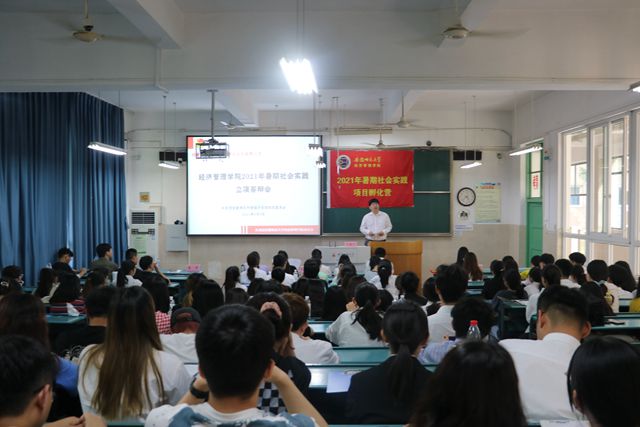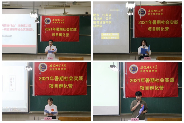 拟组建的31支暑期社会实践队伍按照抽签顺序进行答辩,团队负责人围绕所属团队的基本概况、前期准备、项目特色、经费预算、工作安排及相关应急措施等方面进行现场汇报。汇报项目涉及党史宣讲、乡村振兴、经济调研、志愿服务等多方面内容,各团队将专业特色与暑期实践紧密结合起来,团队活动内容丰富,主题鲜明,各具特色。