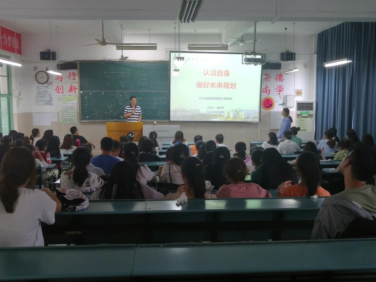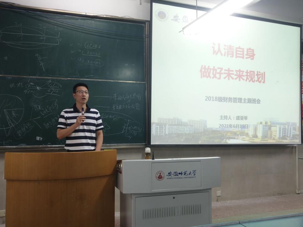 本网讯(m88官网 盛亚琴 窦雨雪)为帮助同学们进一步明确自身发展方向,做到未雨绸缪、扬长避短,2018级财务管理专业于2021年6月15日下午在行知楼2020301教室举办了 “认清自身 做好未来规划”主题班会。公司党委副书记陈刚锋受邀参加,2018财务管理专业全体同学参会,班会由辅导员盛亚琴主持。