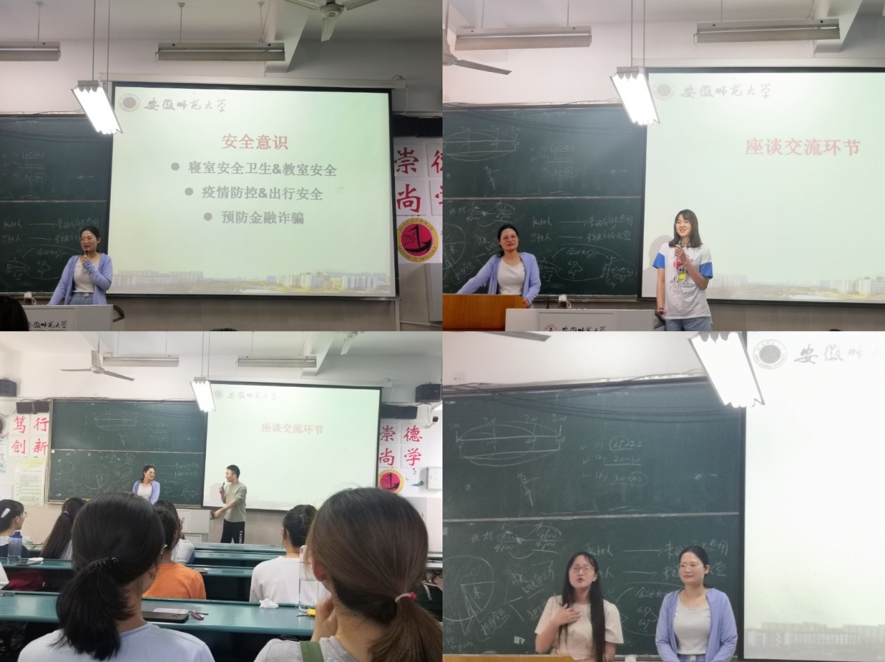 班会最后是座谈交流环节,盛亚琴邀请了三位同学进行经验分享。谷智超、张馨越同学作为考研代表为同学们分享了考研的心路历程;缪莹莹同学作为就业代表分享了自己的规划。也提醒着同学们选择的重要性,无论选择哪个方向,同学们都要遵循内心想法,做自己不会后悔的事情,结合当下,做出最适合自己的决定,并为之努力奋斗。
