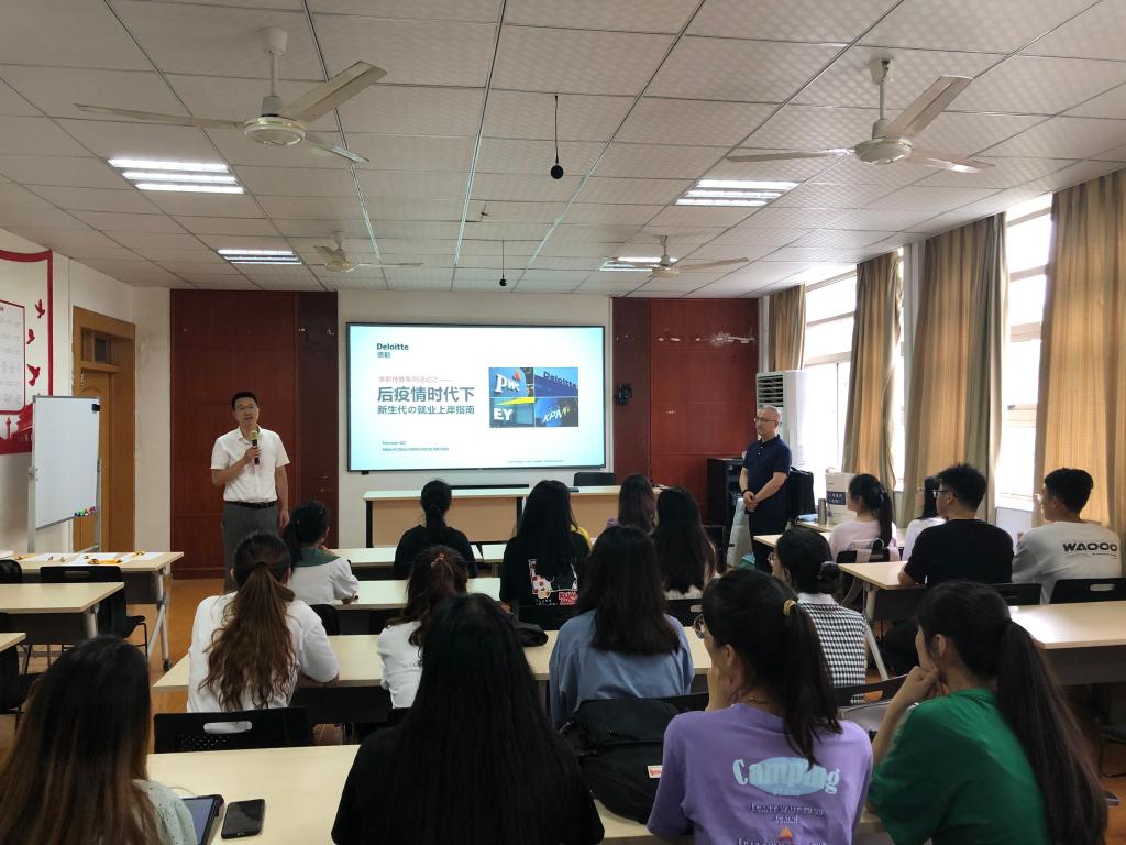 宣讲中,曲悲岩结合疫情背景下就业面临的新变局,分别从后疫情时代财经职业机会、事务所的校招流程、事务所的简历及面试、从平凡到卓越的建议四个方面进行了充分阐述。他围绕同学们关注的招聘方式问题,详细介绍了后疫情背景下招聘方式由以外部招聘为主转向以内推为主的变化情况,强调了内推的工作质量和就业层次高于外部招聘的就业观点,同时他还与在场员工进行了积极互动,鼓励员工们注重求职就业能力的培养。会议最后,校区专员潘忠军向同学们介绍了致同会计师事务所、汇丰环缝环球客户服务(广东)有限公司以及广州市森大贸易有限公司等单位的部分岗位,并对同学们提出的简历设计问题作出了详细的答复。宣讲结束后,企业负责人与在场同学进行了进一步的交流,鼓励他们勇敢尝试,把握机会,迎接挑战,并指导有实习意愿的同学有序投递简历。