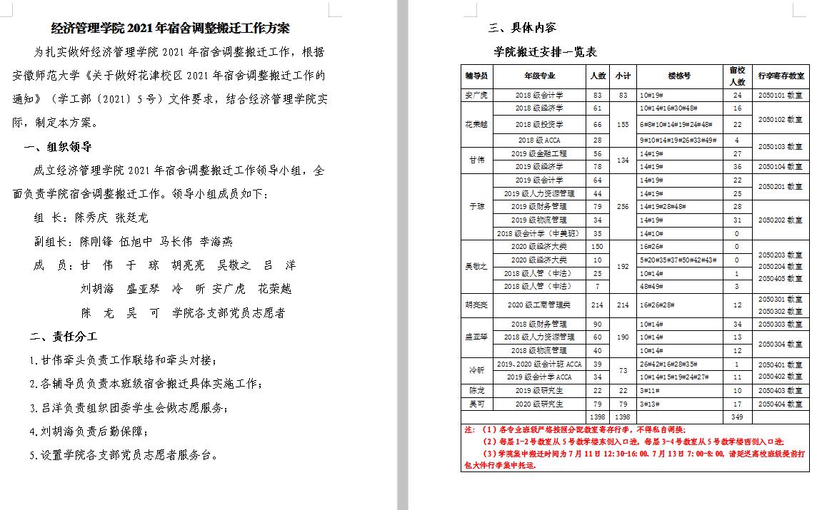 在员工宿舍正式搬迁前,公司领导班子、辅导员深入员工宿舍,了解员工的需求和困难,制定《m88官网2021年宿舍调整搬迁工作方案》;成立了m88官网2021年宿舍调整搬迁工作领导小组,召开多次员工宿舍搬迁工作专题会议,具体分工、落实工作责任、对可能突发的情况准备应急工作预案;提前演练、准备应急药品、统一发放行李编织袋、防潮工作。同时,积极加强与校总务处、保卫处等职能部门沟通协调,共同推进员工宿舍搬迁工作顺利、有效进行。