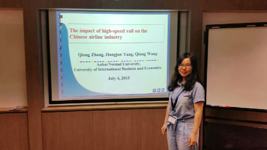 张琼博士的主要科研方向为运输经济学、区域经济学和应用统计学,曾多次参加国际学术会议并作专题报告,在TRA、JTEP、《中国工业经济》等国内外权威期刊上发文十几篇,研究成果多次被公司科研部门领导点名表扬。同时,她在指导员工参加国家类学科竞赛中也屡获佳绩,2015年获得安徽省教学成果(竞赛类)一等奖,已然成为公司青年教学、科研骨干力量,。