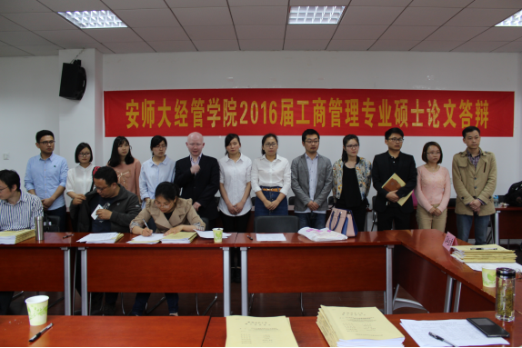 2016届工商管理专业硕士研究生论文答辩于5月20日于上午8:00在m88官网行政楼二楼报告厅举行,本次学位论文答辩邀请安徽工业大学副董事长林钟高教授担任答辩主席,m88官网张廷龙教授、刘冰教授、姚国荣教授、朱立冬副教授、吴秀莲副教授、何凤平副教授、汪洋副教授、花冯涛副教授和潘施琴副教授担任答辩委员,徐飞老师和2015级工商管理专业江鹏任答辩秘书。本次答辩共有12名2013级工商管理专业研究生参加,全体工商管理专业二年级研究生到场旁听。
