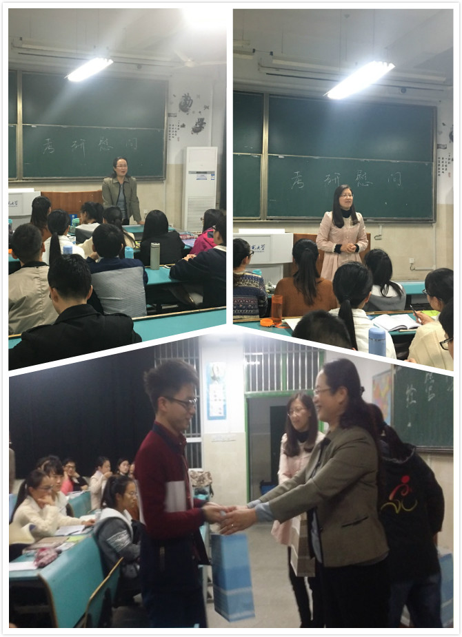 “公司领导老师来慰问我们了!”11月5日,在考研教室2010303,同学们个个洋溢着幸福的微笑。公司党委书记陈秀庆、党委副书记李海燕和辅导员老师带着公司对同学们的祝福,为考研同学送去了奶粉等慰问品。陈秀庆强调了目标的重要性,有目标才有方向和动力,有目标才会充实,没有目标生活就会变得有缺憾。考研过程是痛苦而又幸福的,考研过后就会收获自己更加充实的人生。李海燕激励各位考研学子,以后有任何事情都可以找辅导员,找书记,辅导员和书记会一直在大家的身边,为大家指导,为大家服务。考研路,不孤独,考研路,不害怕,考研路,不放弃。让在座的考研学子深受鼓舞,信心大增。