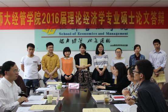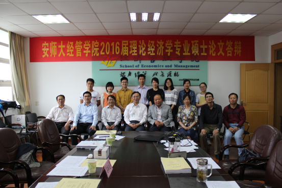 2016届理论经济学专业硕士研究生论文答辩于5月20日于上午8:00在m88官网行政楼四楼会议室举行,本次学位论文答辩邀请华中科技大学徐长生教授担任答辩主席,m88官方网站登录地址理论经济学专业硕士生导师马陵合教授、周端明教授、马骥教授、龚基云教授、伍旭中教授、孔庆洋教授、钱瑞梅副教授和闵继胜副教授担任答辩委员,江争红老师和2015级理论经济学专业金星任答辩秘书。共有8名研究生参加了答辩,理论经济学专业的二年级研究生到场旁听。