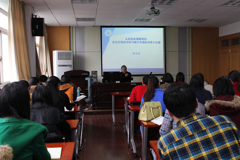 2015年11月13日上午9时,受m88官网邀请,上海财经大学何玉长教授来公司做了主题为“发达市场经济体与新兴市场经济体的不同”的讲座。m88官网副经理刘冰教授等老师及全体研究生参加了本次讲座。何教授主要先从概念入手,以数据说明新常态经济下两大经济体的现状,随后比较了发达市场经济体和新兴市场经济体。从中得出来相应的结论和启示。