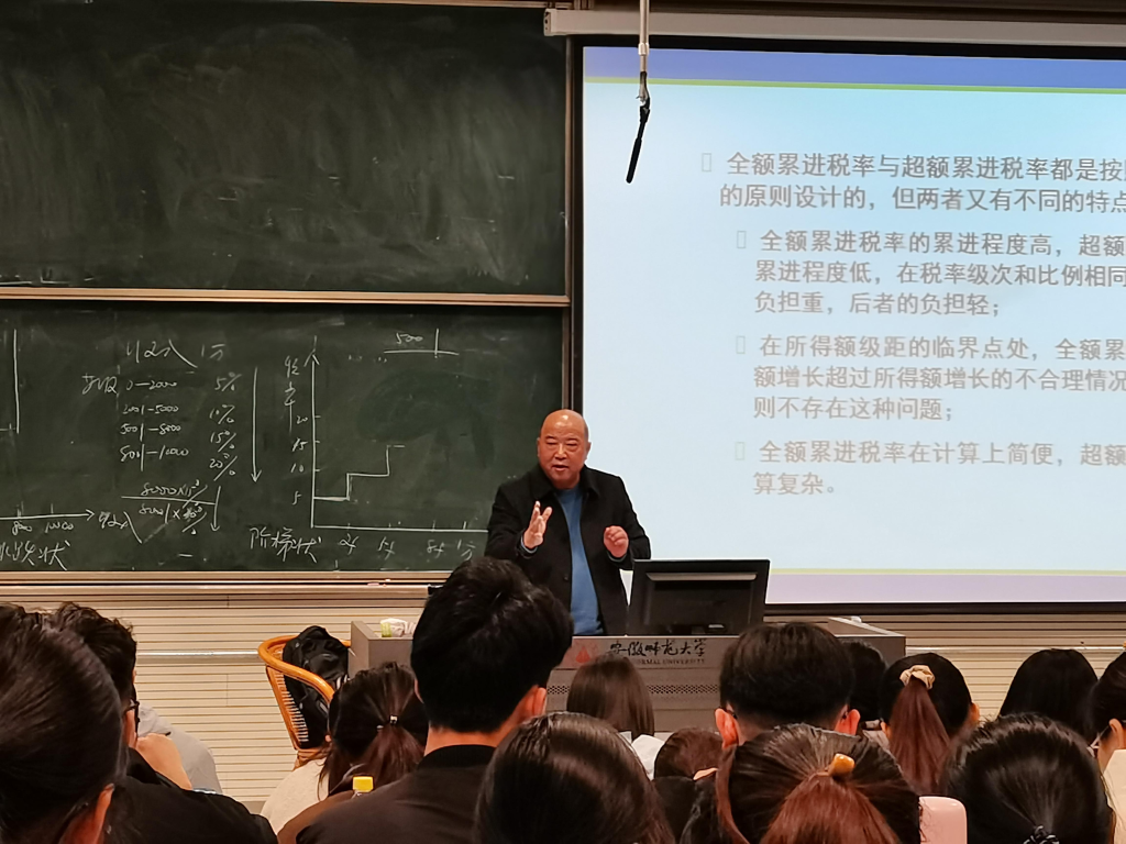 本次公开课内容为“税收要素与税收的分类”。伍旭中老师首先从税收要素、税收主体、课税对象、课税基础以及税率五个方面引领员工进行了简短的课程回顾,以幽默风趣的语言再次向员工阐释了向谁征税、对什么征税以及征多少税等核心问题。接着,伍旭中老师从税法、纳税实际负担和经济分类三个视角详细剖析了税率问题。