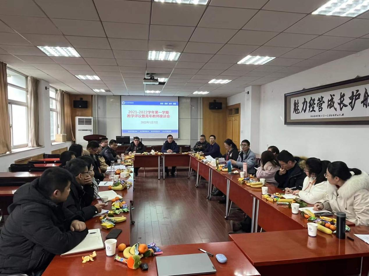 为帮助青年教师成长成才,全面提升教学科研水平,m88官网于1月7日下午在公司二楼会议室召开2021-2022学年第一学期教学评议暨青年教师座谈会。公司领导班子、公司督导团成员马骥教授、公司督导员成员许仁青副教授、青年教师导师代表花冯涛教授、朱立冬副教授、公司教学办及近三年参加工作的15名青年教师参加了座谈会。座谈会由m88官网副经理马长伟主持。