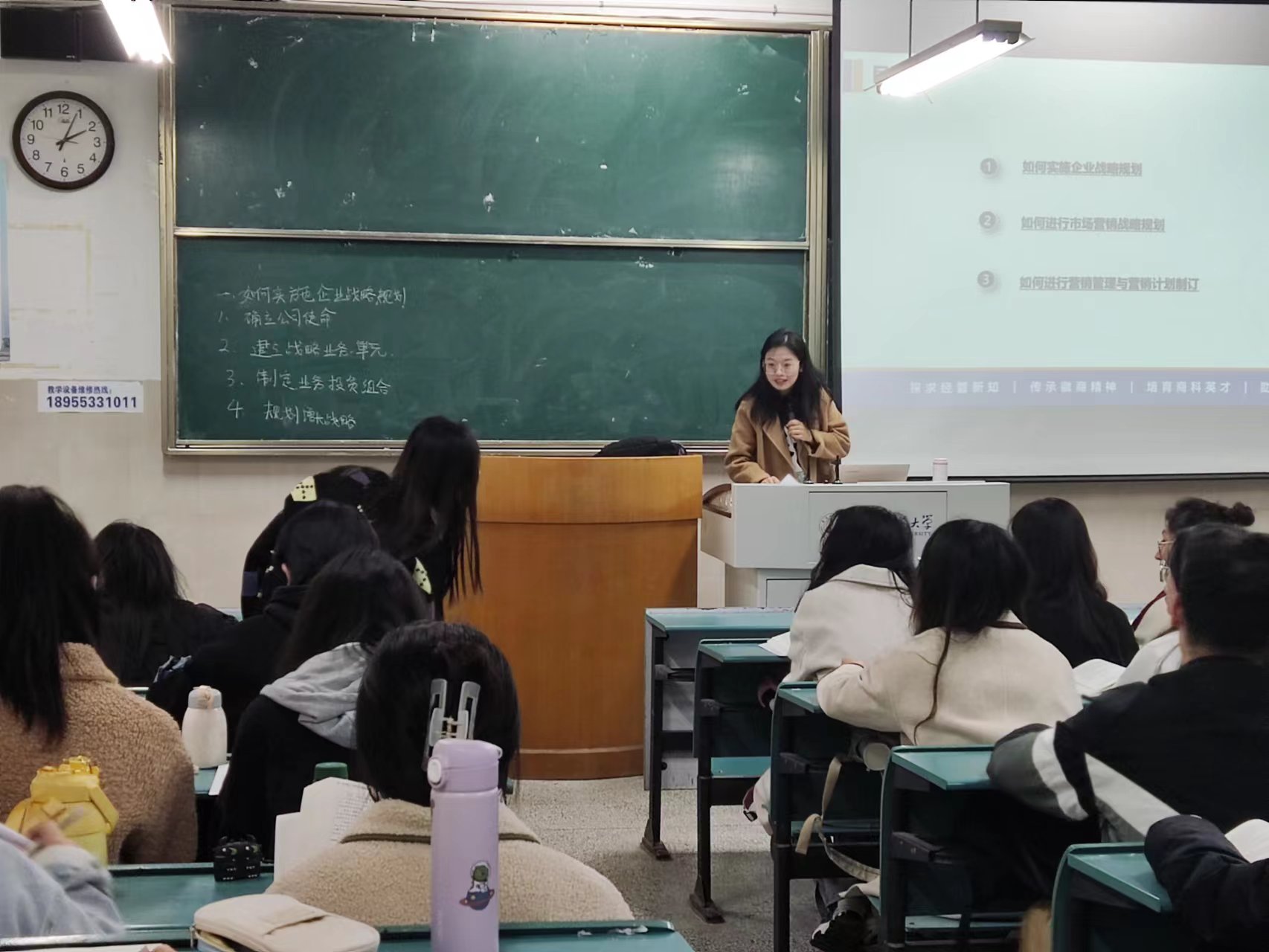 11月15日下午,在版权所有 m88官网-登录入口教学楼2020101教室,公司张慧老师为21级工商管理1班同学主讲了一节生动的本科教学公开课《市场营销学》,公司近三年新进教师参加了本次教学活动。本次公开课主要内容是“如何制定市场营销战略和市场营销计划”。