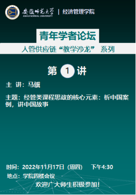 2022年11月17日下午,人力资源管理系和供应链管理系在公司四楼会议室开展主题为《经管类课程思政的核心元素:析中国案例,讲中国故事》教学沙龙活动,张廷龙经理、马骥教授、供应链管理系主任方昶、人力资源管理系主任王寅和两个系的青年教师参与了会议。