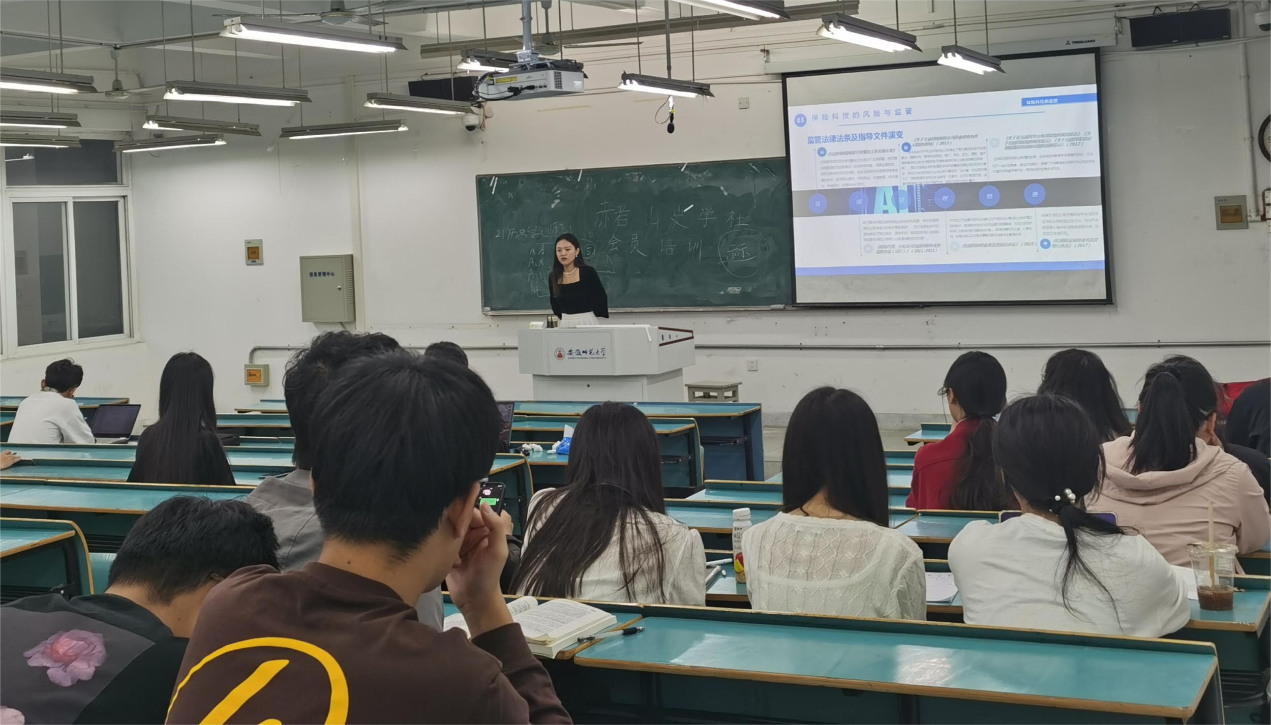 为了加强金融专硕同学对新时期保险业创新活动的认识,增强专业学习热情和积极性,2023年10月29日下午MF教育中心邀请明亚保险经纪公司的王蕴竹女士做《互联网时代的保险科技创新》专题讲座。讲座由金融专硕学位点负责人钱瑞梅老师主持, 2022级、2023级金融专硕和2020级金融工程专业的同学们参会。