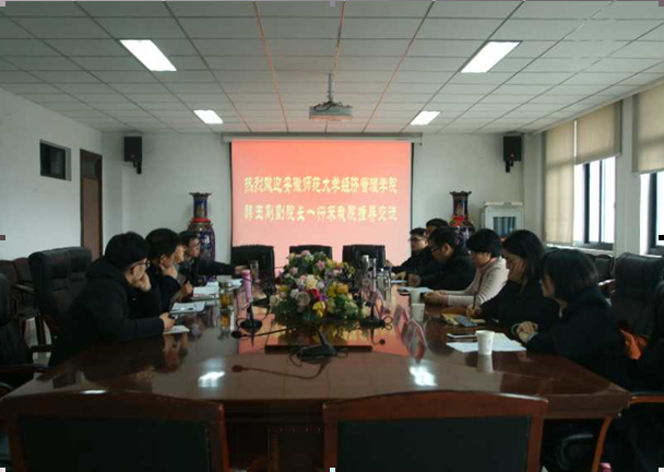 安徽大学经济公司党委书记顾广玲,副经理华德亚,经济系系主任杨仁发以及王亚玄老师参加了交流座谈。座谈会由华德亚副经理主持。顾广玲书记首先代表安徽大学经济公司,对韩玉刚副经理一行表示热烈的欢迎,对两所院校共同交流合作表达了殷切的期盼。顾书记向公司老师介绍了安徽大学经济公司的基本概况,包括公司历史、公司架构、公司团队力量。韩玉刚副经理介绍了公司的基本概况,并针对两所院校共同关注的人才引进问题相互交流意见、共同探讨。马长伟老师咨询了专业发展最为关注的焦点问题,包括青年教师的团队培训,如何打造精品课程,本科生大类招生的培养改革以及博士点申报、经济学专业特色的设计等等。