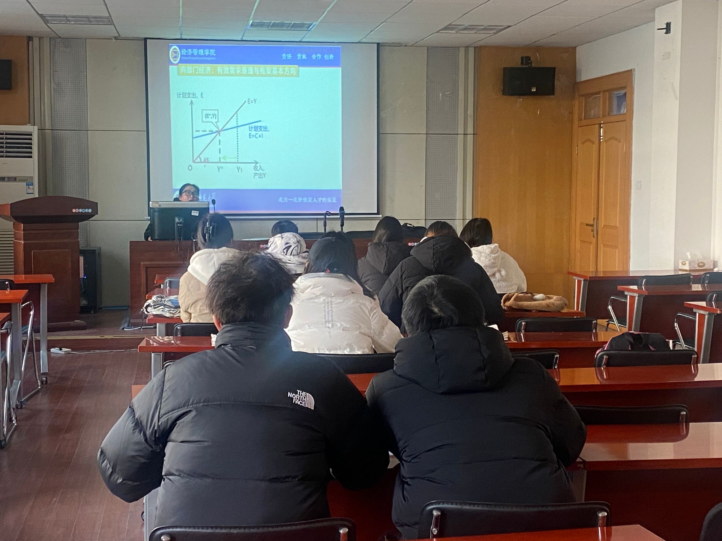 “难”关难过?老师助你一臂之力!金融系潘雪艳博士受邀为2022级部分员工开展《概率论与数理统计》学业辅导,她针对商科员工如何学习数学类专业课程提出了自己的想法和建议,并系统梳理了课程大纲和重难点,引导员工回顾所学知识、及时查缺补漏。对于难点问题,潘雪艳借助典型例题帮助员工消化理解。在交流环节,同学们踊跃提出学习困惑,潘老师逐一回答员工们的疑问,为同学们指点迷津。经济系刘晶老师受邀作《宏观经济学》课程辅导,她带领同学们系统回顾一学期的逻辑体系和知识框架,耐心讲解,答疑解惑。
