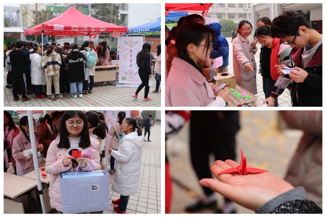 本次活动共分为四个部分,分别是“球”你答对吧、“轻启心扉,传递祝福”、“折纸传情,鹤你相会”、“手执笔墨,我写我心”。“球”你答对吧主要是同学们随机选择一个球,并回答压在球下纸条上的问题。不仅内容有趣,还扩充了同学们的知识面。“轻启心扉,传递幸福”是指同学们将祝福语写在书签上,并随机抽取一份留有别人话语的书签带走。这一活动让温暖的爱意在师大学子之间相互流传。“折纸传情,鹤你相会”指同学们在工作人员的指导下折成千纸鹤,感受指尖的艺术。“手执笔墨,我写我心”是让同学们在便利贴上写出自己最想说的话,对象或是自己,亦或是亲人朋友。借助笔墨传达对远方之人的思念和祝福。每一项活动完成后,工作人员还会给参与者分发精美的小礼品。